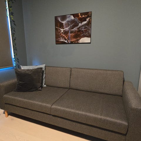 Er du superallergisk mot hunder kan du kanskje få en reaksjon, da det har frekventert hunder av forskjellige raser i sofaen. Den bli sist renset høsten 2024, kun normalt vedlikehold etter det.