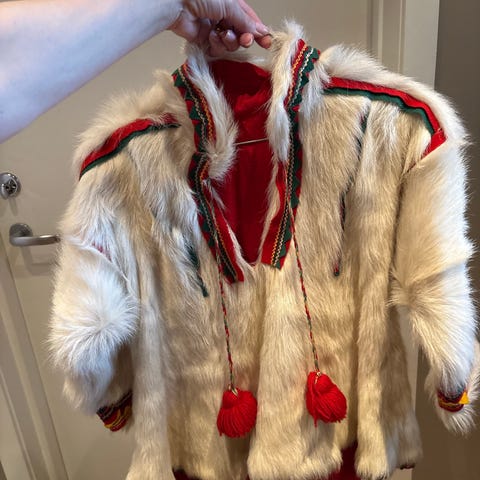 Vakker, håndsydd pesk fra tidlig 50-tall. Passer både gutt og jente. Fint vinterplagg. Ikke mye brukt. Lengde 55 cm, bredde 35 cm.