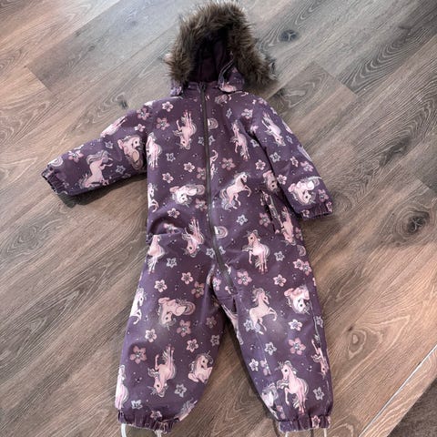 Name It foret vinterdress str 98 med avtagbar hette selges til kr 400,-. Ny pris er 1099,-. Dressen er kjøpt ny av oss og brukt til et barn ved røyk- og dyrefritt hjem. Hele elastiske fotstrikker