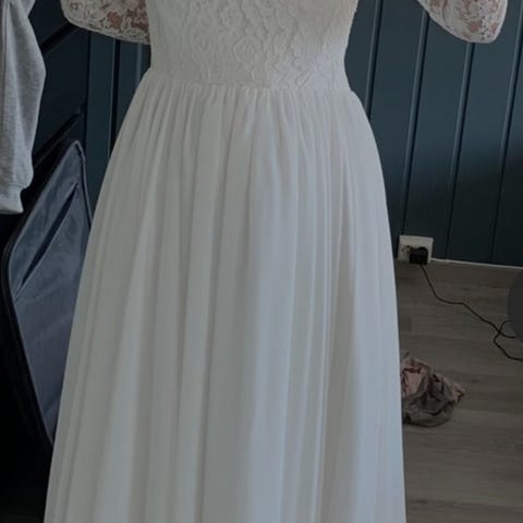 Kjøpt som andre brudekjole til resepsjonen men ble aldri brukt. Str 36.