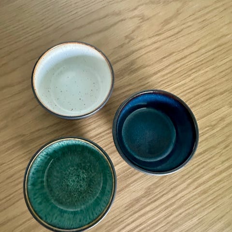 Byon kopp med skål i lyseblå keramikk. Rund kopp med hank og tilhørende asjett/fat i samme farge. Egnet til servering av kaffe, te eller andre varme drikker. Sett med flere kopper og skåler kan brukes både til hverdags og ved servering til gjester.