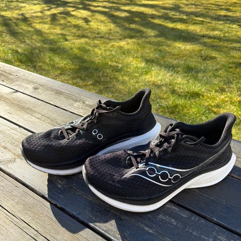 Tidligere generasjon av en knakende god konkurransesko/supersko fra Saucony. Kun brukt på konkurranser logget i Strava, tilsammen 110km. Masse sko igjen.