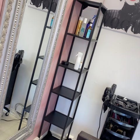 IKEA speil i helfigur med bred gullfarget ramme. Rektangulær modell som kan plasseres stående mot vegg eller monteres på vegg etter behov. Passer i gang, soverom eller stue der det er behov for et stort speil med markert ramme. Materiale er glass med ramme i metall eller treverk med gullfarget overflate (eksakt materiale ikke oppgitt).