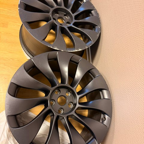 Selger 1 stk. original Tesla Überturbine 21-tommers felg til Model Y Performance. Felgen ble kjøpt inn som reserve/erstatning, men selges nå da bilen er solgt.