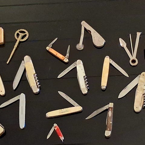 Lot med kniver selges høystbydende over 1200. Tillegg for frakt.