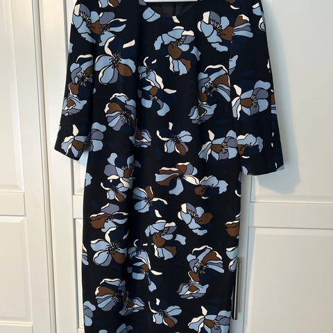 Gerry Weber kjole for dame i størrelse 40. Kjolen er i svart og hvitt med mønstret front og rygg kombinert med ensfargede svarte sidepaneler. Materialet er polyester. Modellen har 3/4-lange ermer og rund hals. Glidelås i ryggen for lukking. Egnet som hverdags- eller penkjole avhengig av tilbehør.