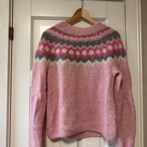 Selges da jeg har for mange ullgensere, og ikke får brukt denne så mye som jeg burde. Genseren er kjøpt her på Finn. Husker ikke hva slags garn som ble brukt, men mener det er en blanding av ull og angora🤔 genseren er myk, veldig lett og varmer godt. Jeg er 161 høy og genseren rekker meg til hoftene, så litt kortere modell enn de fleste ullgensere. Jeg sender mål om ønskelig.☺️