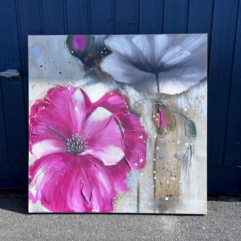 Skeidar maleri med motiv av sommerfugl i flerfargede toner på lys bakgrunn. Lerretet har et abstrakt og moderne uttrykk med tydelige penselstrøk og struktur i overflaten. Passer som veggdekor i stue, soverom eller gang. Merke: Skeidar. Mål: 80x80 cm.