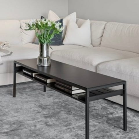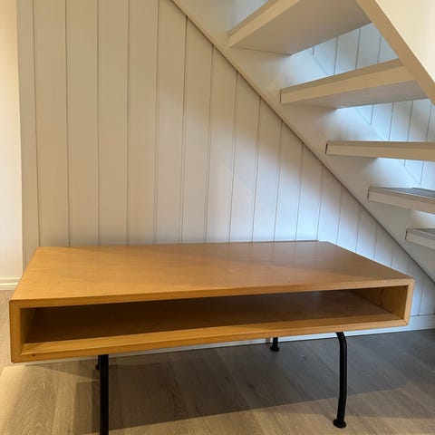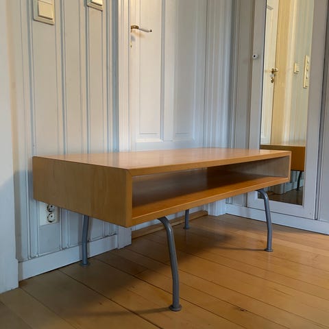 Solid sofabord med hylle. L115cm B50cm H48cm