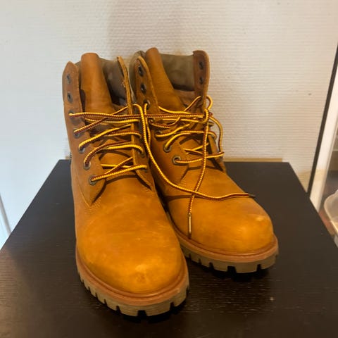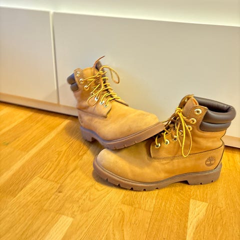 Timberland støvler i størrelse 42. Klassiske beige skinnstøvler med snøring og kraftig yttersåle med grovt mønster. Overdel i skinn med polstret ankelparti for økt komfort. Passer til hverdagsbruk og utendørsaktiviteter der det er behov for solide og robuste sko.