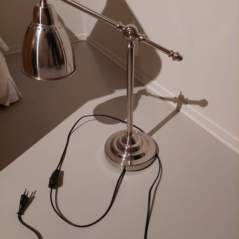Lampe i stålfarge. Passer til skrivebord eller nattbord😊
