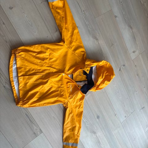 Kuling jakke for barn i størrelse 146-152. Jakken er unisex og laget i polyester i en gul farge. Den er litt gulere enn den ser ut på bildene, mitt kamera gjør fargen blandete av en eller annen grunn. Den har avtagbar hette, glidelås foran med knappestolpe og lommer med klaff og trykknapper. Ifølge merkelappen har jakken vanntetthet 10 000 mm og pusteevne 5 000 g/m²/24h. Passer til bruk i hverdagen og uteaktiviteter i variert vær. Svært lite og pent brukt av ett barn