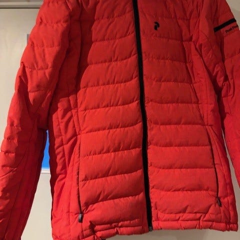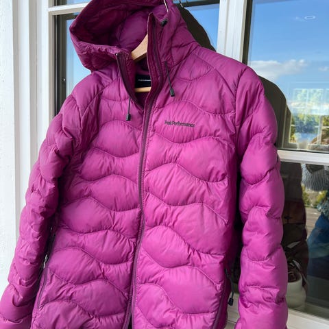 Pent brukt Peak Performance dun jakke str XL. Lett innsvinget, passer str 40/42. 90% andedun. Fine detaljer, og perfekt både i bakken og til fots.