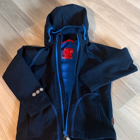Reima jakke for gutt i størrelse 110. Jakken er laget i polyamid og har flerfargede felt i beige og brun med oransje detaljer og øglemotiv. Den har avtagbar hette, glidelåslukking foran og sidelommer med glidelås. Innsiden har oransje meshfôr. Egnet som ytterjakke for barn i hverdagsbruk og utendørs lek.