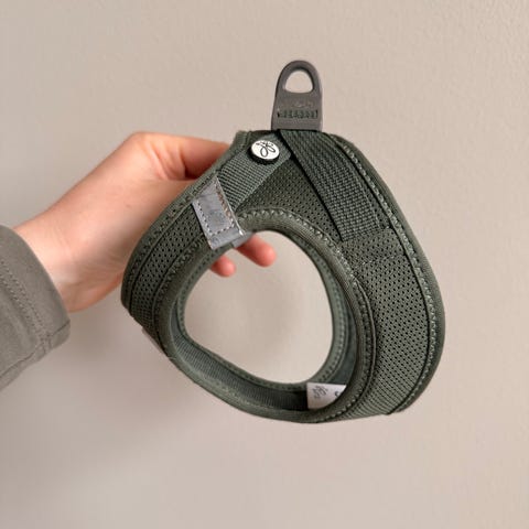 Curli Vest Harness Air-Mesh størrelse XL selges da den ble for stor i passformen til vår hann-beagle. Har brukt en lignende til han og den virker veldig komfortabel da han har vært valp og nå er ungdom og ikke spesielt flink ennå til å gå pent i bånd. Vår lille beagle-tispe bruker en helt lik modell i størrelse L og den sitter som støpt på henne så det er nok konfigurasjonen på hannhunden brystkasse og at han er en mellomstørrelse mellomXL og L som gjør at den ikke satt like godt på han. Den er ypperlig for hunder som ikke liker å få dratt noe over hodet siden det er step-in teknikk for å ta den på.