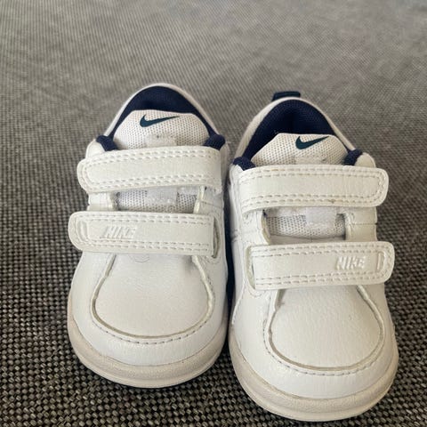 Nike barnesko i størrelse 17. Skoene er svarte med hvit Nike-logo og hvit såle. Overdelen er i pustende tekstil/mesh med lisser foran og hempe bak for enklere av- og påkledning. Yttersålen er i gummi med demping i hælen. Passer til hverdagsbruk for små barn.