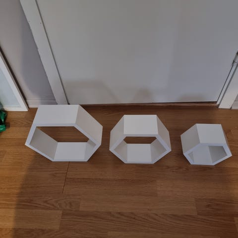 To husformede hyller i forskjellige størrelser28×17×12 og 32×21×12.