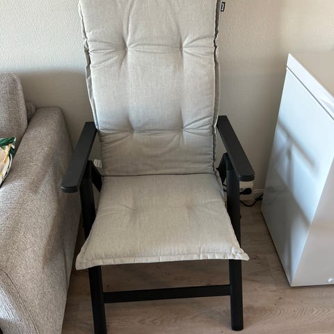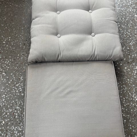2 stk lys grå hagestolputer med lav rygg selges samlet kr 100,-.
