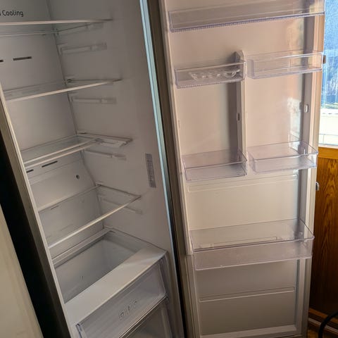 Pent brukt, selges grunnet endret behov. Dette er kjøleskap nr to. Frittstående utførelse med front i hvit og digitalt display på døren. Innvendig har skapet flere justerbare glasshyller, dørhyller for oppbevaring av flasker og mindre varer, samt to skuffer nederst hvor den ene har fuktighetskontroll (Humidity Control) for bedre lagring av frukt og grønnsaker. Kjøleskapet har oversiktlig belysning og en ryddig innredning som gir god plassutnyttelse til dagligvarer og drikke. Les om modell her: https://www.power.no/hvitevarer/kjoel-frys-og-kombiskap/kjoeleskap/samsung-rr39c7ej5wwef-kjoeleskap-snow-white/p-2109627/store/1139/?gclsrc=aw.ds&gad_source=1&gad_campaignid=1597376106&gclid=Cj0KCQjwsdnNBhC4ARIsAA_3heg1kMsx1yqh_dyXbHPcgArCLEr37Xd_JL9t9hf_8GWGz3NSm45d_UwaAuAoEALw_wcB