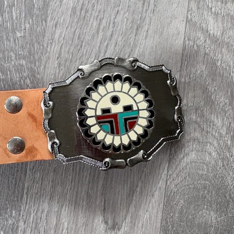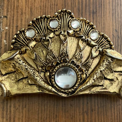 Spennen har en stein i midten(tror den er ekte) og masse fine detaljer. Dette gjør beltet til et skikkelig blikkfang.