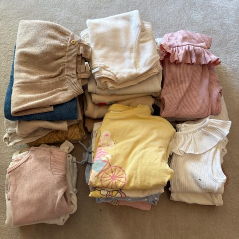 Kjempefin klespakke med duse, fine og mest nøytrale farger. Inneholder blant annet: