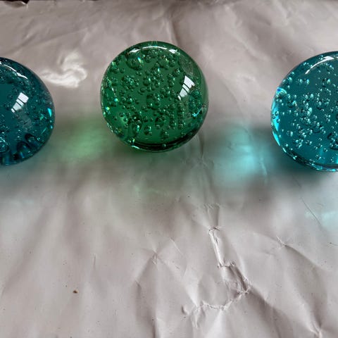 Selger et sett med pene lyslenke kuler som du kan ha lys eller telys oppi. Kan også helt sikkert brukes til andre ting.
