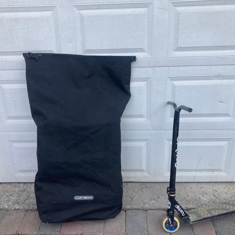 Ortlieb vanntett pakksekk i rød og svart. Sekken har rullelukking på toppen og bærehåndtak på midten av fronten. Egnet for oppbevaring og beskyttelse av utstyr mot vann og fukt, for eksempel på tur, sykkel- eller båtreiser. Materialet er slitesterkt og lett å tørke av.