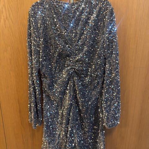 Denne er et syn! Virkelig nydelig både i fasong, den champagnefargede tonen og de platinumfargede paljettene ser ekstra luksuriøse ut i forhold til mange andre paljettklær 😍