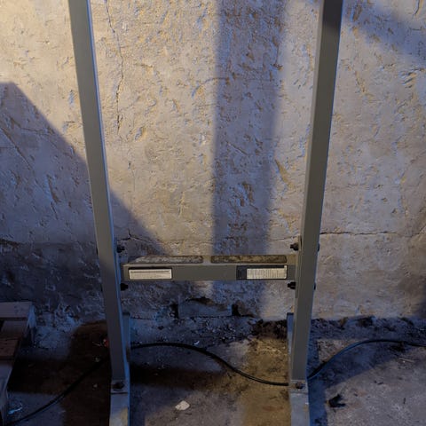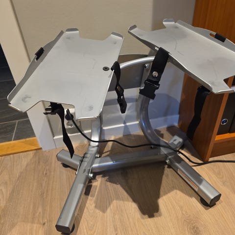 Det mangler et par muttere og én skrue som ikke fulgte med da jeg kjøpte det. Jeg har brukt stativet helt fint uten dette, men nye kan enkelt kjøpes billig på f.eks. Biltema.