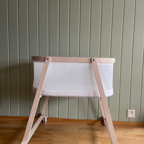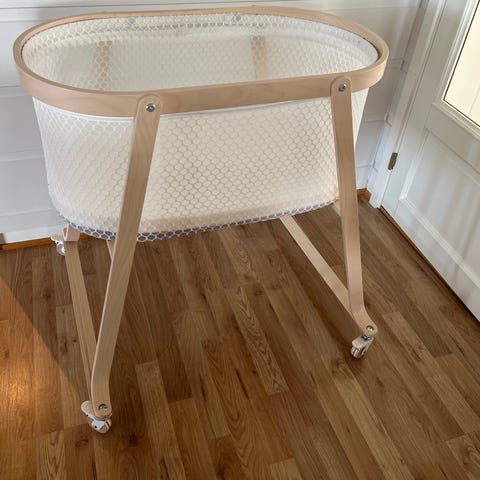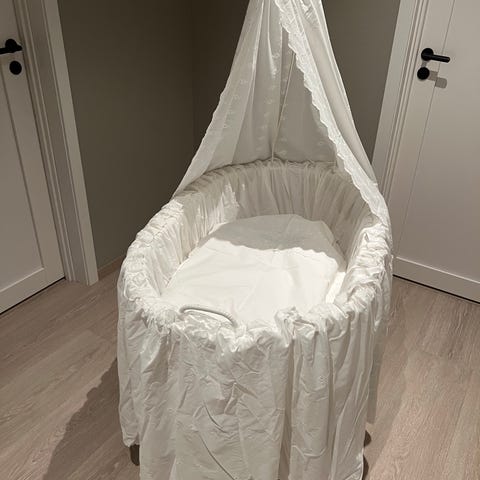 Babykrybbe med låsbare hjul fra IKEA. Pent brukt, fremstår som ny. Brukt av ett barn hvor det ikke har vært problemer med gulp eller annet søl.