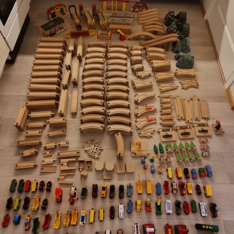 Tils ca 36 tog/vogner + masse ekstradeler for å bruke utenfor togbanen.
