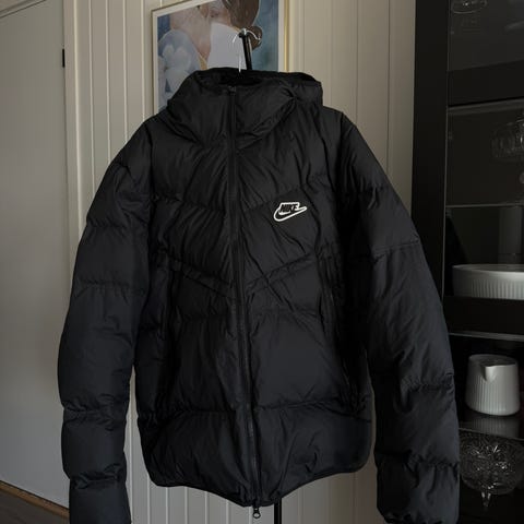 Nike FC Barcelona jakke i herremodell størrelse M. Jakken er blå og laget i polyester med vattert, quiltet mønster. Den har glidelås i full lengde foran og ståkrage. På brystet er det klubbemblem og sponsorlogo, samt Nike-logo. Egnet som lett ytterjakke til hverdagsbruk eller fritidsaktiviteter.