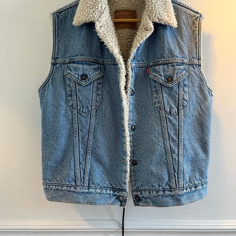 Levi's vest størrelse L til salgs. Vesten er nesten ubrukt men har lagt i mange år. Kan sikkert brukes av kvinner som for menn.