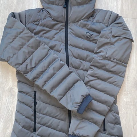 Veldig god dunjakke fra Norrøna. Har noe flekker øverst på innsiden ved glidelåsen som ikke er forsøkt fjernet. Har også fått en liten rift på ca 5-6 mm. Har ikke brukt jakka siden riften kom.