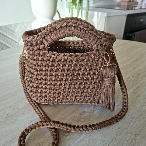 Heklet i tykk polyestertråd som gjør at fasongen holder meget godt. Bunn med føtter.