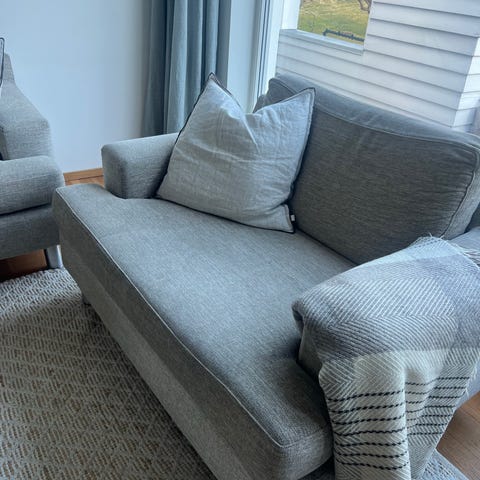 2 Dorian sofaer fra Slettvold farge brun/ beige .Desverre litt katte klor bak pÄ sofaen synes ikke om det stÄr inntil vegg.Kan selges seperat.Salong bord i Eik ogsÄ fra Slettvold.