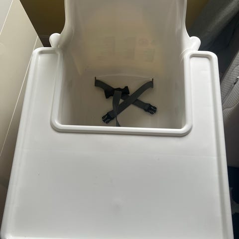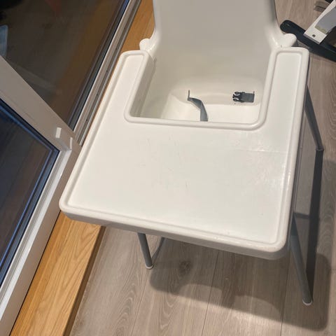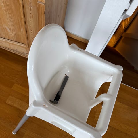 IKEA Antilop stol med sele og fire ben som enkelt kan demonteres. Hvit farge. Pent brukt. Brukt som gjestestol. Må hentes.