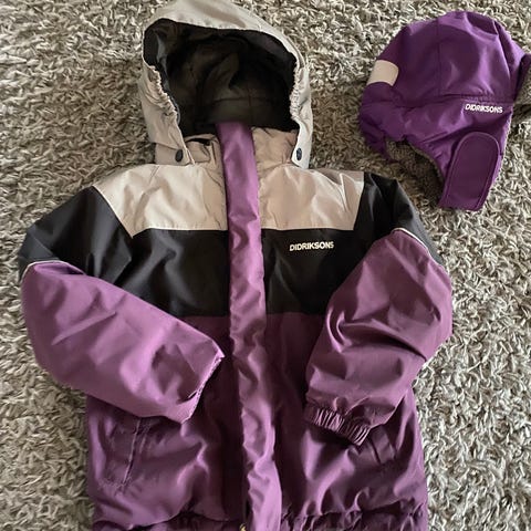 Pent brukt, vanntett jakke fra Didriksons. Vi brukte som vår/høst jakke, men den selges som vinterjakke på butikker. Det finnes ingen hull eller lignende, men hendene ikke lenger er så lyse i farge.