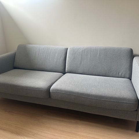 Selger en pent brukt IKEA Nockeby 3-seter sofa. Slitesterkt mørkegrått trekk og mørke ben. Den er romslig nok til at man kan ligge behagelig i den. Sofaen er ferdig demontert og klar for henting. Alle skruer og deler følger med.