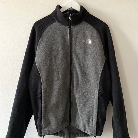 The North Face fleecejakke for herre i størrelse XXL. Jeg bruker L eller XL til vanlig, så denne er liten i størrelse. Kun brukt ved noen få anledninger.