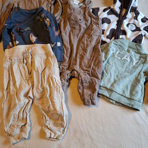 Lite brukte klær i str 56. Omslagsbodyer fra kappahl og Haust and claire. Heldress fra reflex og en bukse fra name it.