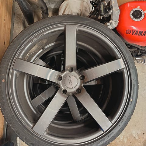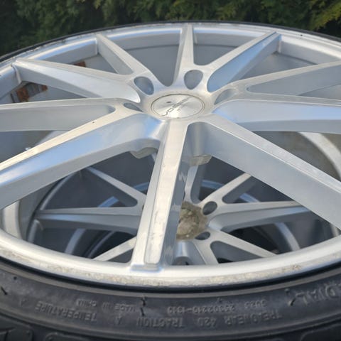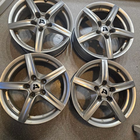 Sprekk i begge felger med 10,5 bredde. Er sprukket i sveis der de er reparert for sprekk tidligere. Kan sveises opp igjen.