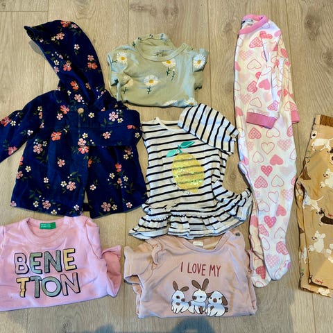 Selger klespakke til jente i størrelse 1,5 til 2 år. Pakken består av et variert utvalg klær som passer både til barnehage og finere anledninger.
