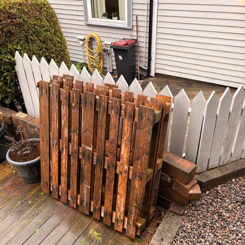 Trepaller i blandet størrelse. Egner seg til lagring, transport eller ulike bygge- og gjør-det-selv-prosjekter som møbler, platting eller vedstativ. Pallenes mål og antall kan variere, og treverket har synlige bruksspor etter tidligere bruk.