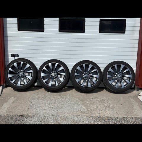 Komplett sett originale felger med sommerdekk og originale dekktrykksensorer (TPMS).