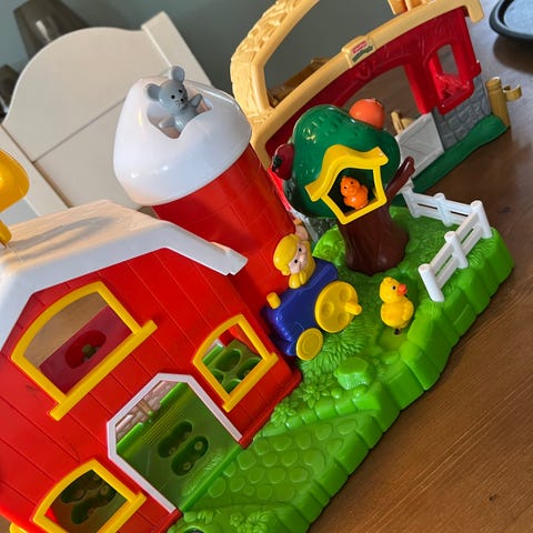 Rydder i garasjen, og har denne gressklipperen til barn som vi gir bort mot henting. Ikke noe galt. Lager sannsynligvis også lyd ved bytte av batteri (ikke testet) 👍