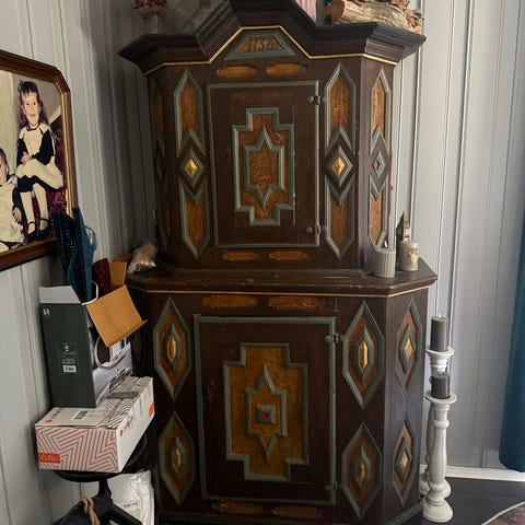 Gammel skap. Mål: 2 m h 2,10 m l og 60 cm b