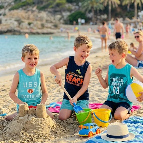 H&M singletter for gutt i størrelse 134. Pakke med tre ermeløse overdeler i bomull i ulike farger. En singlet er lys med trykk foran, en er grønn og en er lys blågrønn. Passer til hverdagsbruk, under genser eller som lett sommertopp. Materiale: bomull.