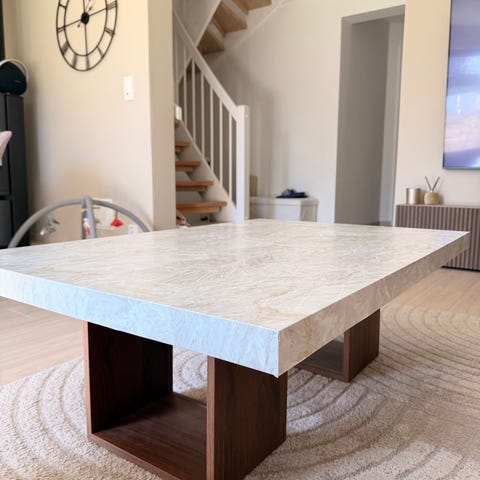 Ritz rundt sofabord Ø100 H45 cm med beige marmor med understell eikefiner oljet espresso.