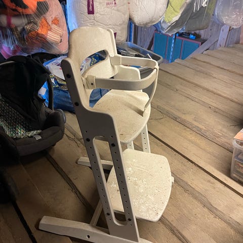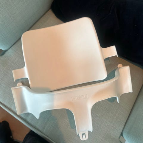 Stokke barnestol bøyle og ryggstøtte i hvit (reservert)